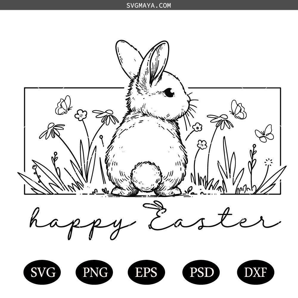 Happy Easter SVG, Easter SVG, Floral Bunny SVG, Spring Svg