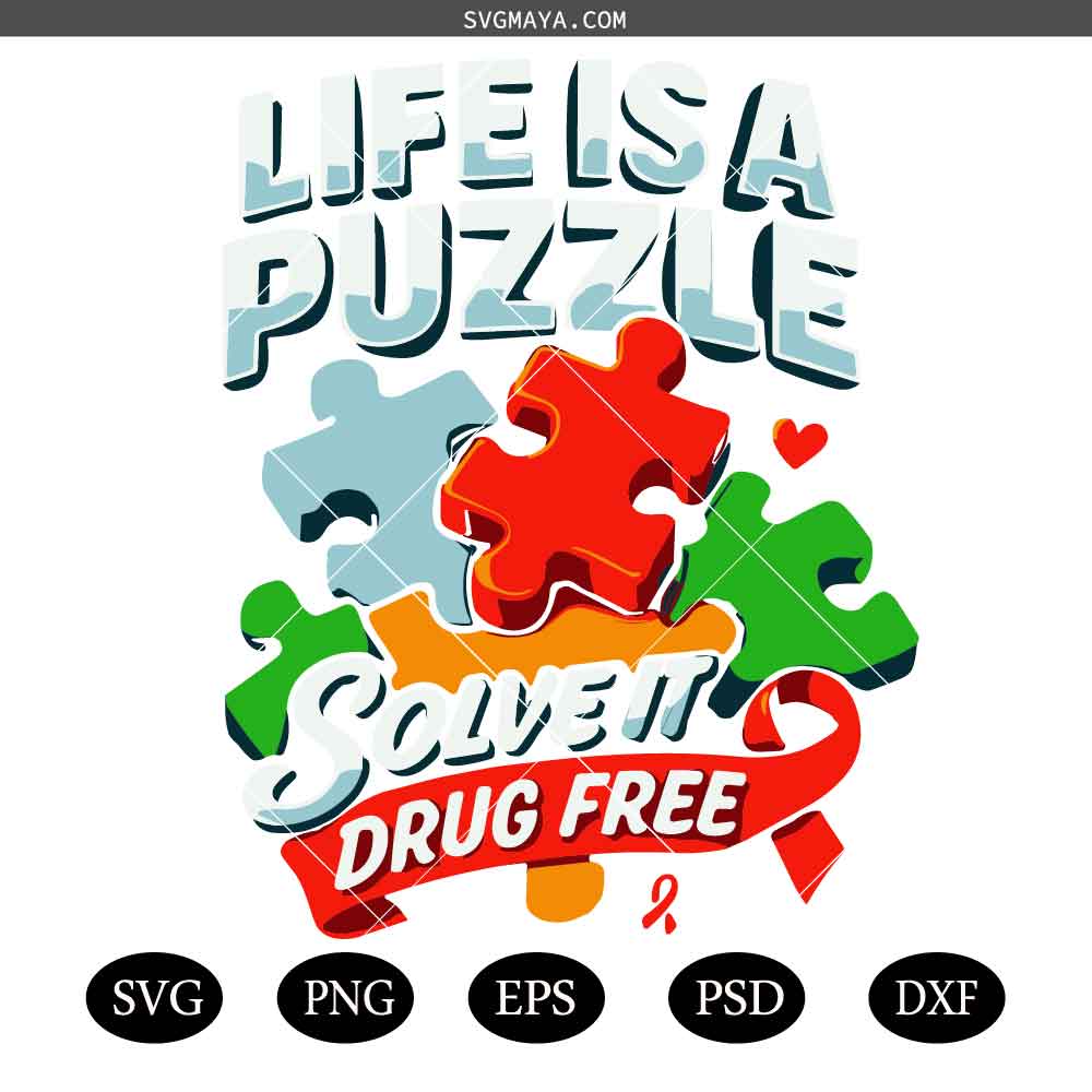 Life Is A Puzzle PNG,Red Ribbon Week PNG,Drug Free Awareness PNG